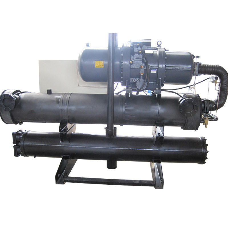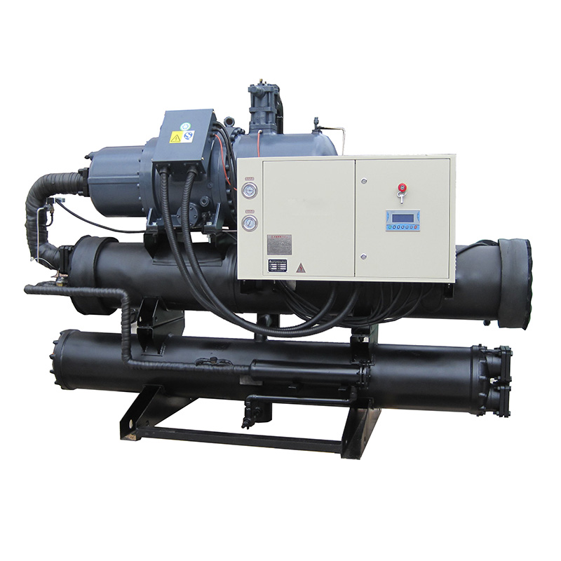 Skruekølere kan opdeles i to typer: vandkølede skruekølere og luftkølede skruekølere. På grund af deres nøglekomponenter - kompressoren bruger skruetypen, kaldes den skruekøler. Enheden er i en tilstand af gas, der kommer ud af fordamperen. Kølemiddel: Efter adiabatisk kompression af kompressoren bliver det en tilstand med høj temperatur og højt tryk.