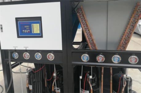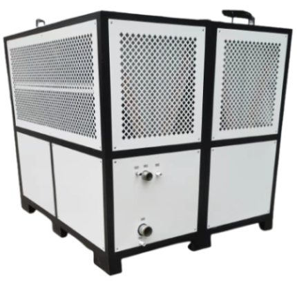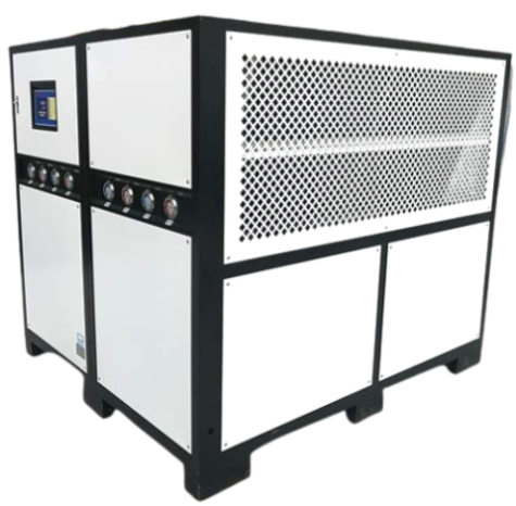 Dette er en 40HK luftkølet køler. Stor køleboks af typen med en kølekapacitet på 126KW (108360Kcal/time). Udbredt i enhver industri: stor sprøjtestøbemaskine støbeformkøling, optisk belægningskøling, glykolkøling, galvanisering af oxidationstankkøling osv.